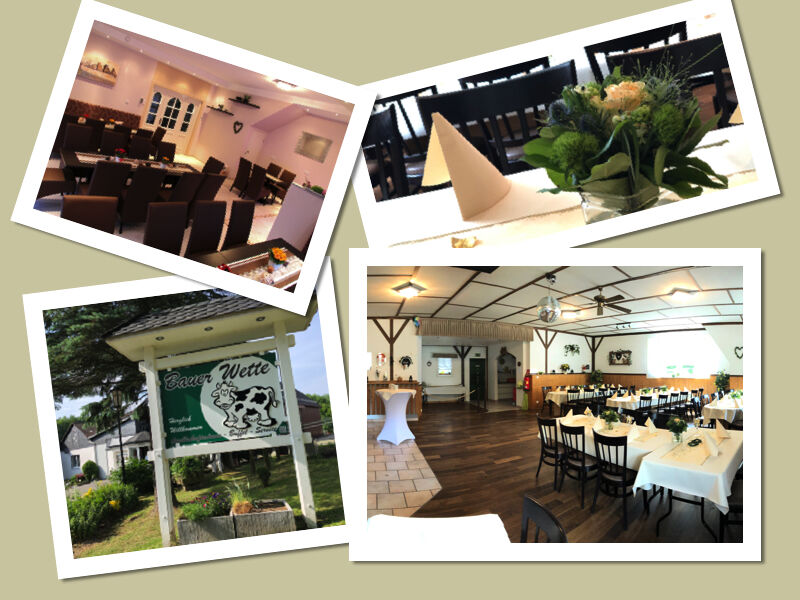 Unsere Leistungen im Überblick: - Räumlichkeiten für Ihre Feier - genügend Parkmöglichkeiten direkt am Haus - zahlreiche Buffetvariationen aus eigener Herstellung - gemütliche Theke mit Servicepersonal - moderne Toilettenanlagen - und vieles mehr Sie müssen nur Ihren Termin auswählen an dem Sie feiern möchten. Den Rest übernehmen wir ! Besprechen Sie mit uns Ihre Buffet Gerichte sowie die Tischdekoration und Ihre weiteren Wünsche. An Ihrem Tag ist dann alles für Sie vorbereitet, Sie müssen sich nicht um das herrichten des Raumes oder das anschließende reinigen kümmern. Somit können Sie in Ruhe Ihre Gäste begrüßen und einen schönen Tag oder Abend genießen.